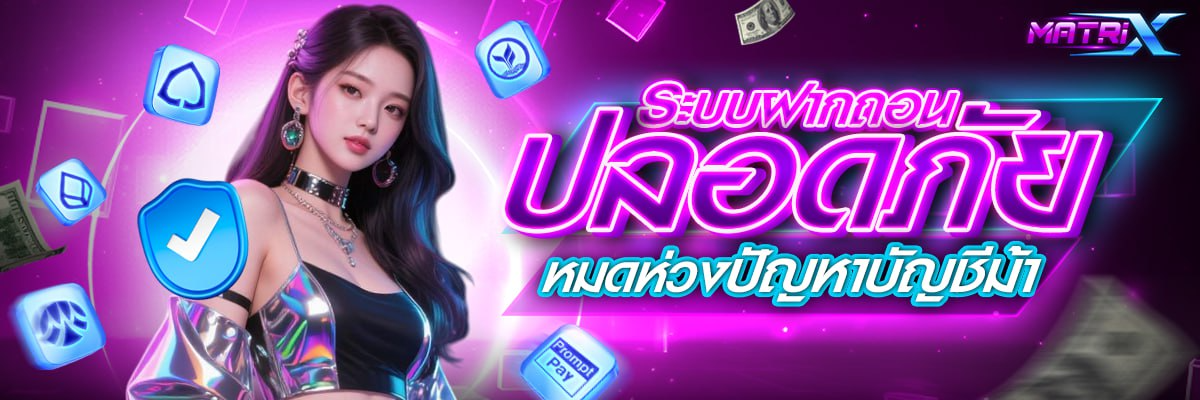 นอกจากนี้ MATRIX ยังมีระบบฝาก-ถอนที่รวดเร็วทันใจ ใช้เวลาไม่เกิน 30 วินาที ด้วยระบบอัตโนมัติที่ทันสมัย รองรับทุกธนาคารชั้นนำในประเทศไทย และยังสามารถทำรายการผ่านทรูมันนี่วอลเล็ทได้อีกด้วย ความปลอดภัยก็เป็นอีกสิ่งที่ MATRIX ให้ความสำคัญ ด้วยระบบรักษาความปลอดภัยมาตรฐานสากล ข้อมูลส่วนตัวของสมาชิกจะถูกเก็บรักษาอย่างดี